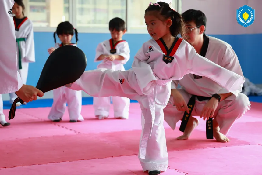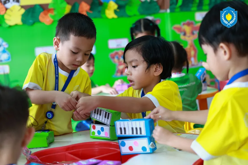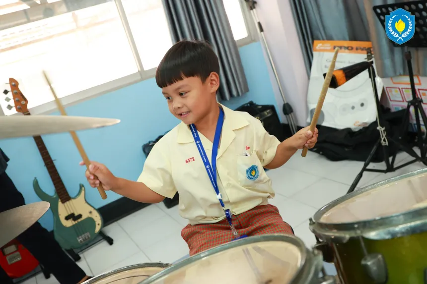 Our K2 students in CBL class are practicing rhythm, hand–eye coordination, and concentration using percussion boxes 🥁✨