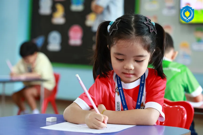 Our K2–K3 little learners joined the English Handwriting Contest, practicing focus, fine motor skills, and patience.