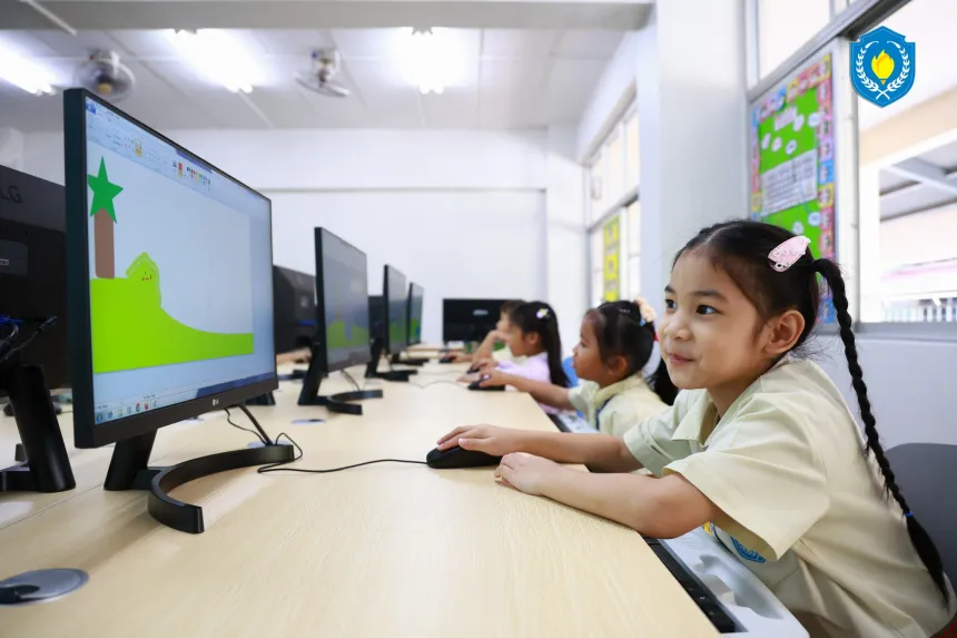 🎨💻 K3 students are having fun in computer class, drawing and coloring with Paint 🖌️✨